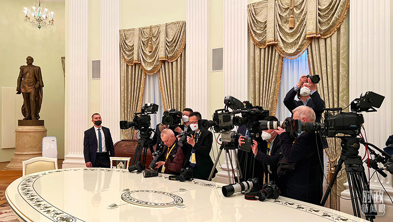 △3月20日下午,中外记者前往克里姆林宫拍摄中俄两国元首会见。(总台央视记者程铖拍摄)