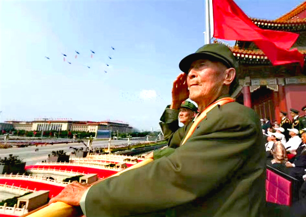 登上天安门城楼,亲眼见证我国国防和军队建设的现代化成就,这是一场穿越岁月的荣光之约,他说:“1949年新中国成立阅兵,手里拿的枪都是从敌人那边打仗得来的,炮也是,坦克也是,但现在航母、战机、轰炸机全都是国产的,在世界上也是先进的,国防力量强大,高兴!高兴!”