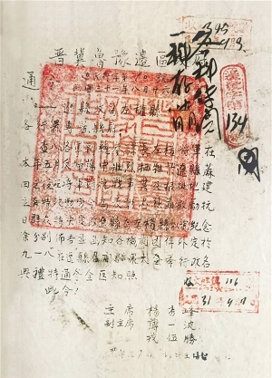 昔东抗日县政府通令民字第1号(民国三十四年七月七日)为官道嘴全村对敌斗争有功,特予以褒扬并通令嘉奖
