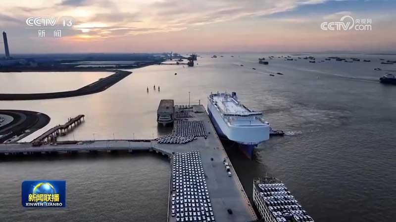 央视网消息(新闻联播):习近平总书记指出,发展新能源汽车是我国从汽车大国迈向汽车强国的必由之路。“十四五”期间,我国汽车产业创新步伐不断加快,新能源汽车产销规模、核心技术、产业链生态等实现跨越式突破,带动中国汽车出口首次位居全球第一。从跟跑到引领,中国向着汽车强国大步迈进。