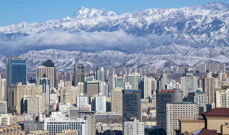 天山脚下的乌鲁木齐市城区一角。