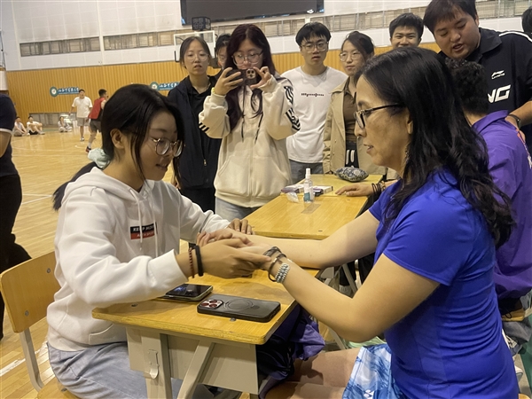 更具特色的是现场设置的“中医药健康驿站”。傅山学院10名学生组成的志愿团队忙着向师生介绍针灸、推拿等中医特色医疗手段,还通过体质辨证为参与活动的教练员和运动员量身定制个性化调理方案。运动场上的活力挥洒与健康驿站的专业服务相互呼应,生动诠释了“体医融合”的创新实践价值。