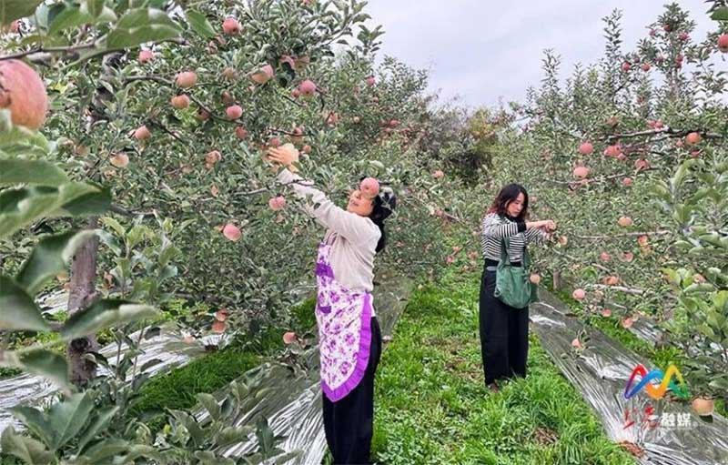 飘香果园不仅结出甜润果实,更铺就了村民的“增收路”。果园常年吸纳十余名附近农村妇女就业,兼顾长期用工与短期零活,让村民无需远行就能实现家门口增收。“忙得脚不沾地也乐意,看着苹果丰收,钱包鼓起来,心里比蜜还甜!”正在分拣苹果的果农李玲笑容满面地说。