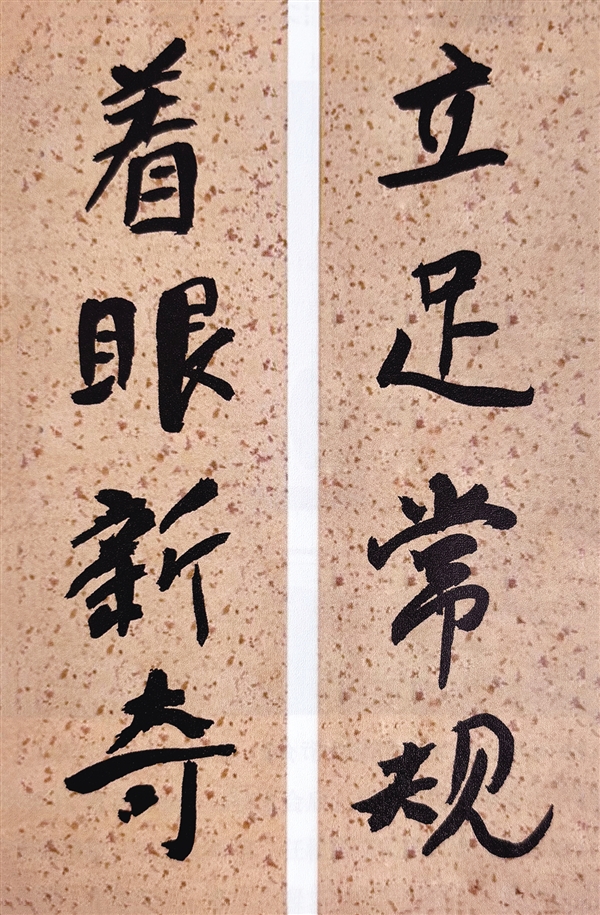 在温暖先生馈赠的书法作品前