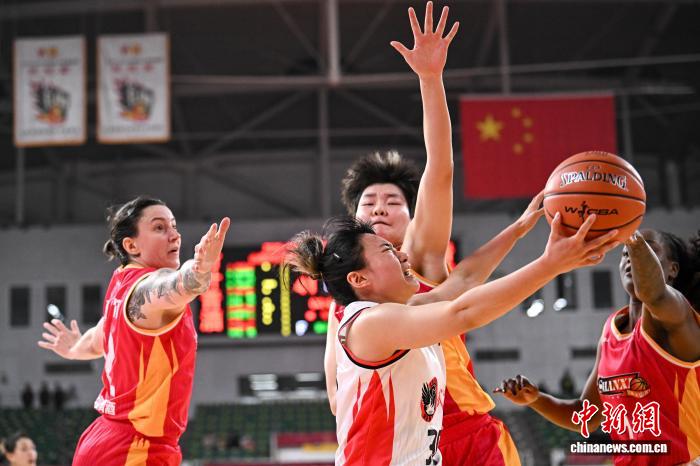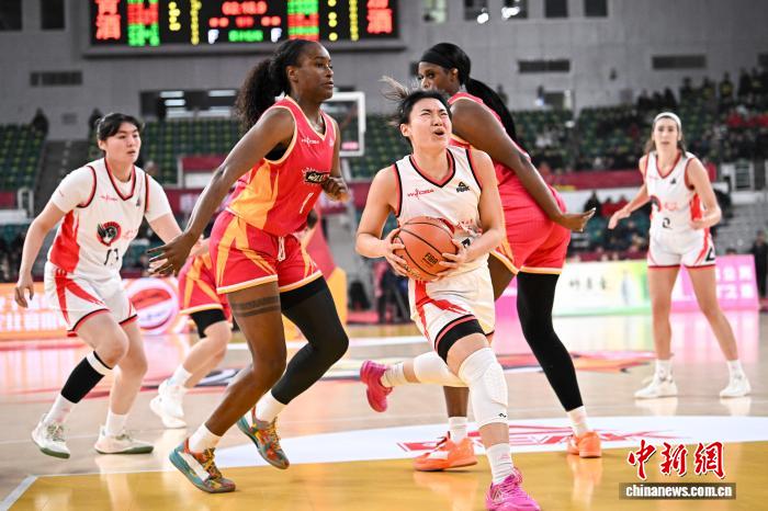1月3日,武汉队球员丁奕可(白)在比赛中上篮。中新社记者 韦亮 摄
