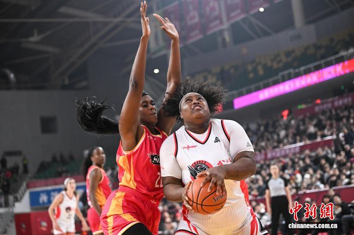 1月3日,武汉队球员班克斯(白)在比赛中持球进攻。中新社记者 韦亮 摄