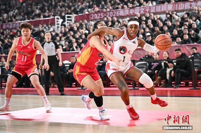 1月3日,山西队球员惠特尔(红)在比赛中持球进攻。中新社记者 韦亮 摄