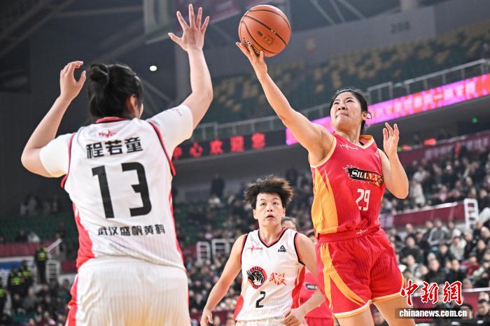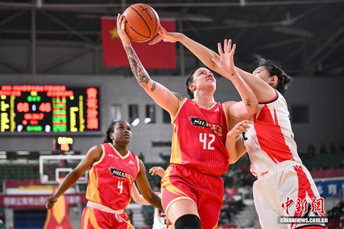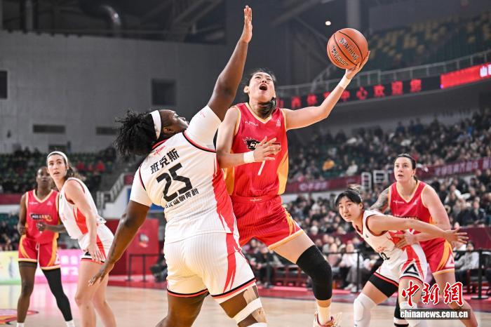 1月3日,山西队球员宋珂昕(红)在比赛中上篮。当日,在太原举行的2025-2026赛季中国女子篮球联赛(WCBA)常规赛第12轮比赛中,山西竹叶青队主场以86比56战胜武汉盛帆黄鹤队。中新社记者 韦亮 摄