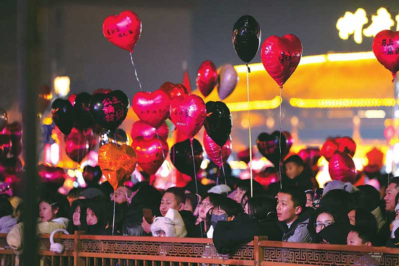 2025年12月31日,市民、游客在忻州古城观看跨年演出。 赵曼君摄