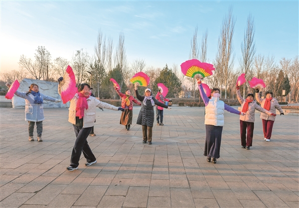 虽已过小寒,平遥古城的寒意挡不住市民的健身热情。近年来,平遥县持续推进全民健身工作,完善公园等公共健身场所设施、配齐各类运动器材,让市民在家门口就能享受到便捷的健身服务。越来越多人结合自身情况,选择心仪的运动方式,在户外舒展筋骨、强健体魄,用活力驱散寒意,以运动滋养身心健康。图为迎薰公园内,市民手持粉扇翩翩起舞。
