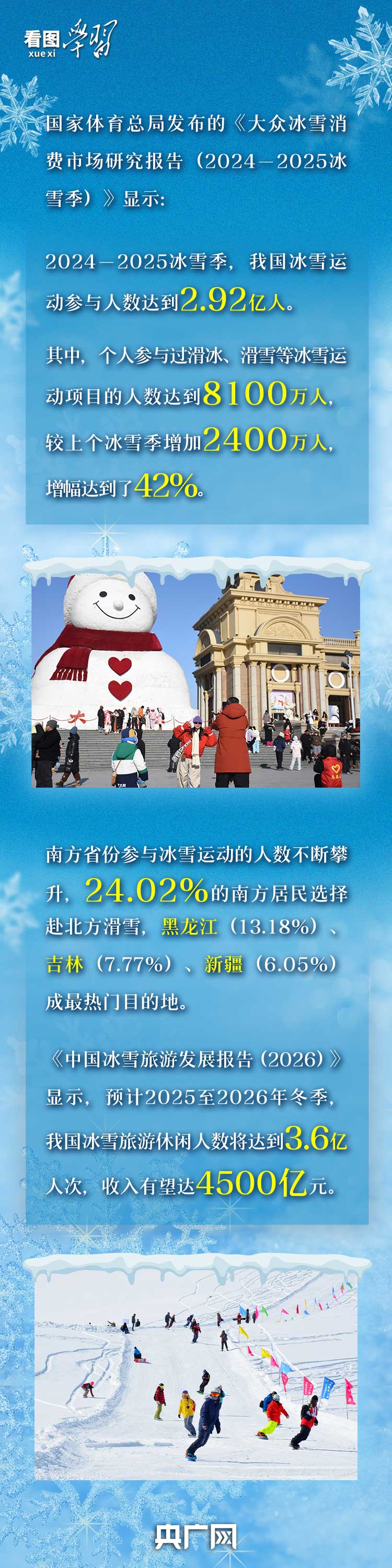 从冰封千里的北方到绿意盎然的南方,中国“冰雪热”成为这个冬天大江南北一道亮丽风景,也为世界冰雪运动注入生机活力。
