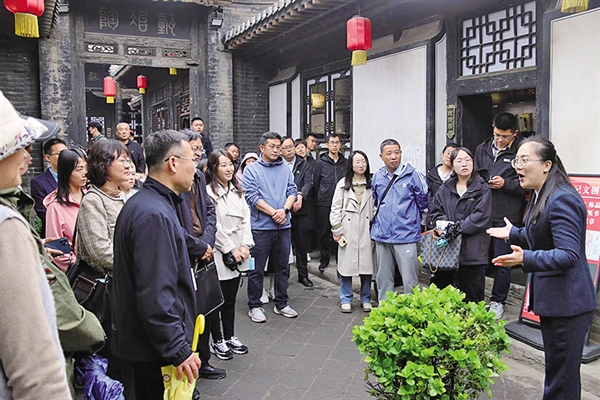 “同心直通车·平遥站”,宣讲员李朝在日昇昌票号博物馆作沉浸式宣讲
