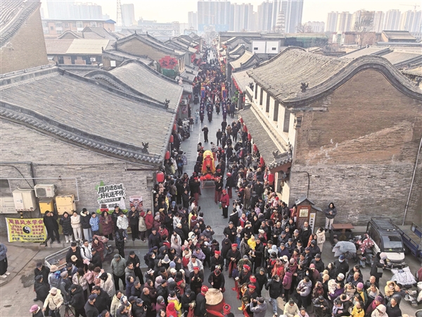 2月4日立春日,太谷古城万人空巷,传承千年的民俗活动 “打春牛” 热闹启幕。活动现场,“县太爷” 执鞭迎春,萌娃化身小主角精神抖擞擂鼓开道,舞狮腾跃、蛟龙翻舞、汉船轻摇……各类民俗表演轮番登场。童声笑语交织着锣鼓喧天,古城街巷处处荡漾着“春”的热闹,人们在千年民俗的延续与传承中,祈愿新岁风调雨顺、五谷丰登。
