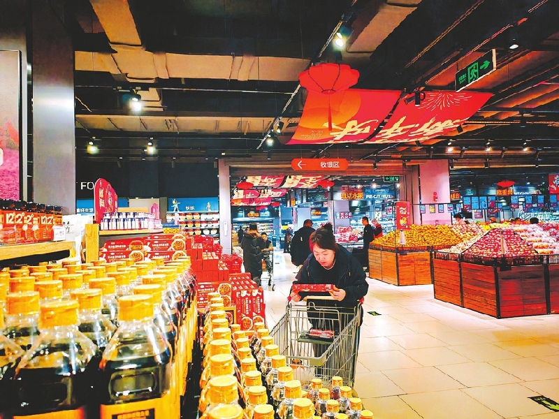 消费者在永辉超市中正天街店选购年货。本报记者任志霞摄