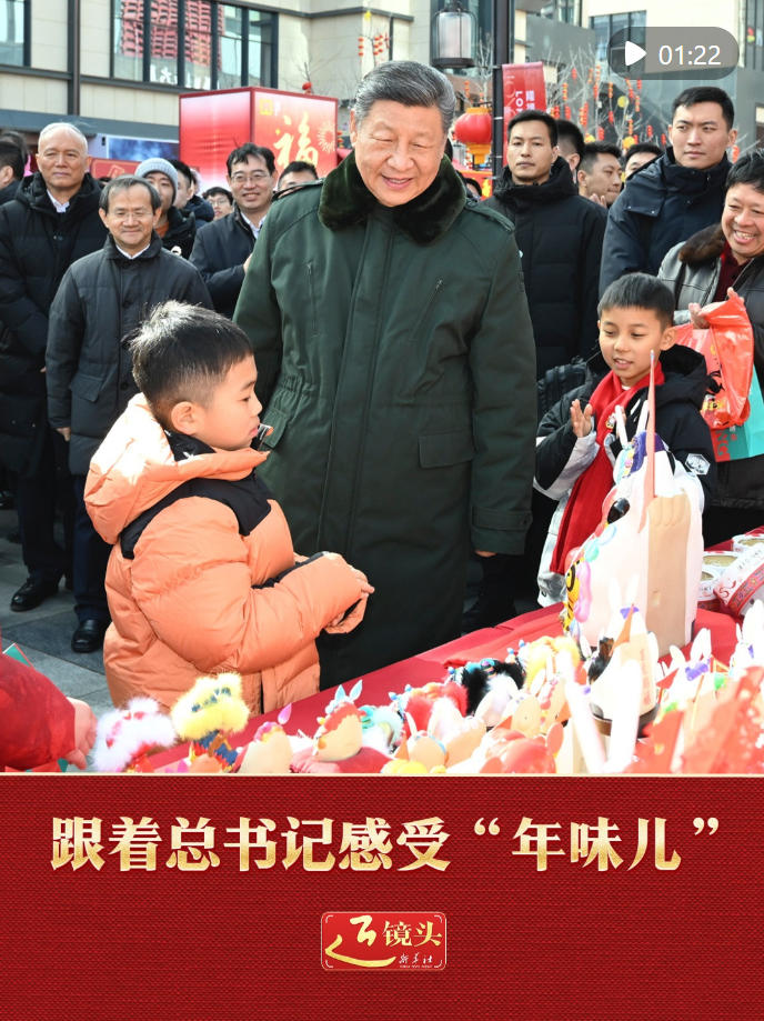 逛市集、看民俗、办年货……这些年,习近平总书记的新春足迹,留下一个又一个温暖的瞬间。浓浓年味,洋溢在千家万户;欢声笑语,回响在神州大地。