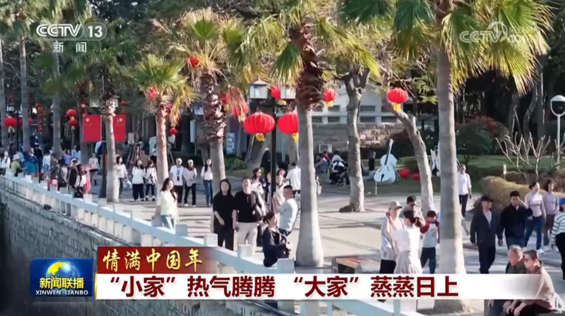 河山添锦绣,情满中国年。城市乡村张灯结彩、喜庆祥和,家家户户辞旧迎新、开心快乐。在铿锵的鼓乐声中,在精彩的展演中,人们礼赞幸福生活,许下美好心愿。团圆时刻,一个个“小家”的热气腾腾,映照着祖国“大家”的蒸蒸日上。