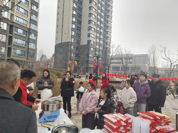 一旁的汤圆烹饪区热气腾腾,工作人员将一碗碗象征团圆的热汤圆送到居民手中,暖意融融。孩子们则在棉花糖制作区兴致勃勃地体验手工制作的乐趣,糖丝在竹签上旋转成型,甜在嘴里,乐在心头。