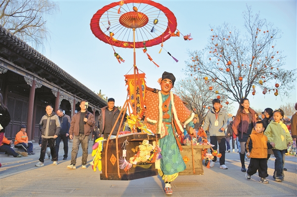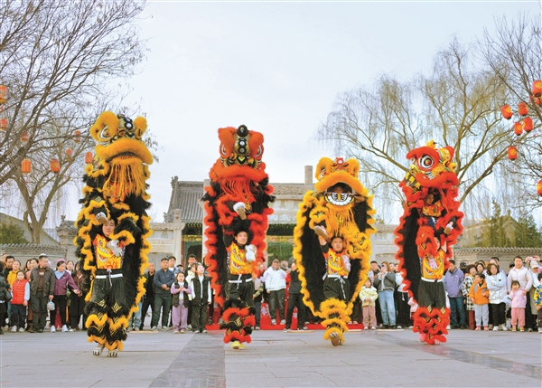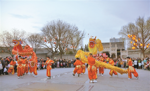 农历二月二“龙抬头”,榆次老城张灯结彩,民俗欢庆活动火热上演,景区内人流如织、热闹非凡。舞龙舞狮气势恢宏,红金双龙腾跃盘旋,醒狮跳跃献瑞,伴着铿锵鼓乐,引得阵阵喝彩;小货郎挑担穿行,杂技、魔术、鼓乐轮番登场,精彩表演让观众目不暇接。