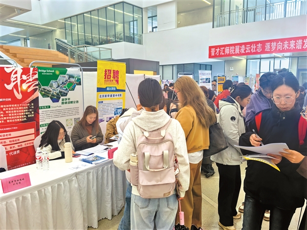 宣讲会后,校园双选会热闹开启。晋中聚焦教育系统人才需求,组织近百家企事业单位组团揽才,涵盖市县两级各类中小学校、重点教育机构以及相关企业,岗位门类齐全、发展路径清晰,精准匹配学校各专业人才求职需求。学子们手持个人简历穿梭于招聘展位,认真研读招聘要求,深入沟通岗位细节,详细了解发展前景,现场氛围十分热烈。当天下午,部分教育机构及用人单位便组织了现场面试,推动引才成果加速落地。