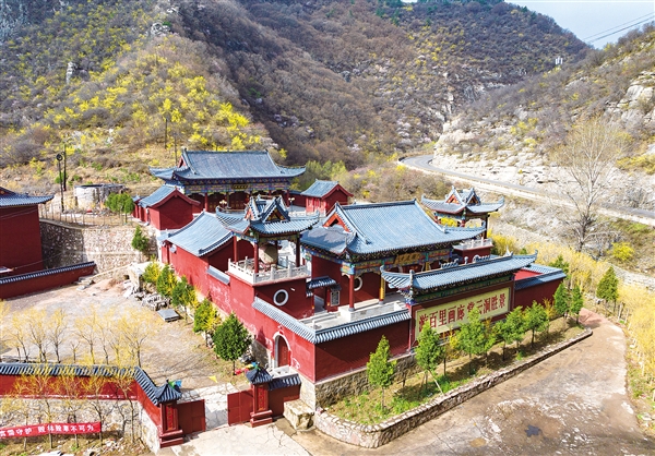 近日,左权县太行山腹地,高欢云洞附近山上连翘花竞相绽放,金黄点点映衬千年石窟,春意与古韵交融。