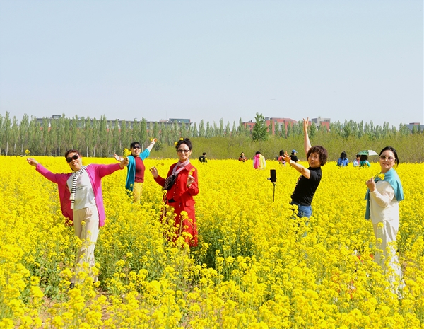 春日芳菲,繁花漫野。近日,晋中各地油菜花次第绽放,尽显春日生机。市城区魏榆路与汇丰街交叉口,连片油菜花悄然盛开,鎏金遍野,为城区晕染出浪漫春色。不少市民或漫步花海、拍照留念;或老少相伴闲游赏景,尽享春日惬意,城市烟火与田园诗意在此相融相映。