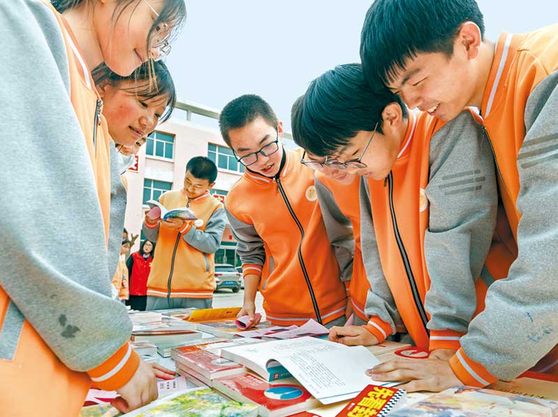 4月21日,榆次区逸夫小学四年级的同学们利用课间时间展示特色宣传海报,交换或购买喜爱的书籍,并在书页上签下自己的寄语,通过图书漂流传递知识、诚信和友谊。为迎接第一个全民阅读活动周,连日来,逸夫小学相继举办“以书会友,阅见成长”分享会、“墨香满校园·读书正当时”读书节、“图书漂流·共享书香”等活动,让学生们感受阅读的魅力。