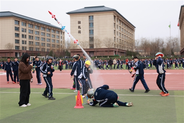 “小火箭”拖着白色水雾“嗖”地蹿上天空,操场上爆发出震耳欢呼;纸飞车在赛道上疾驰,平衡车队如雁阵穿行,无人机编队划出优美弧线……4月的晋中,春光明媚,大唐现代双语学校初中部、高中部第七届科技文化月,上演了一场属于少年的“科技嘉年华”。
