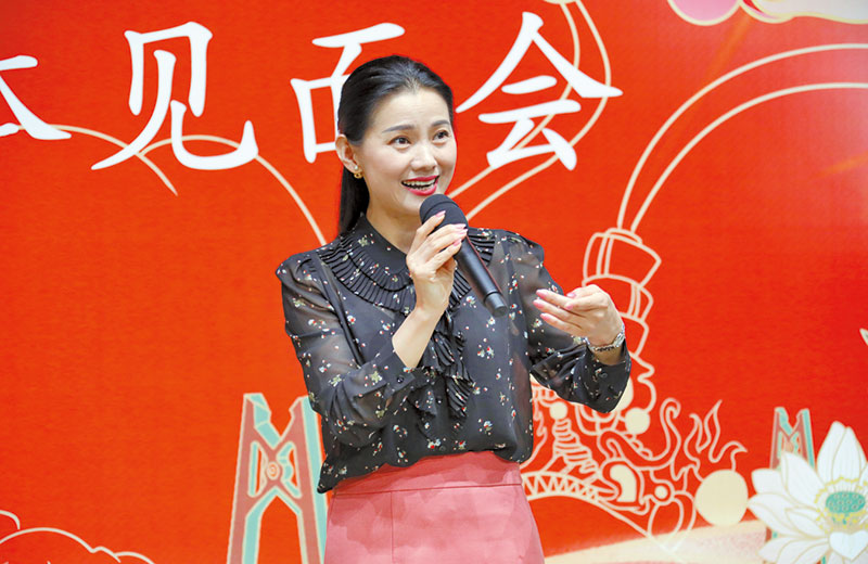 郑芳芳在终评演员媒体见面会上进行表演。