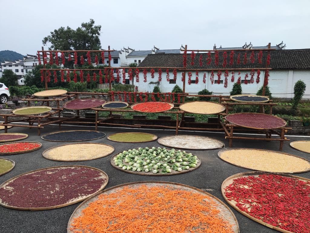 近日,江西省上饶市婺源县秋口镇王村村民晾晒的农作物。新华社记者 刘佳敏 摄