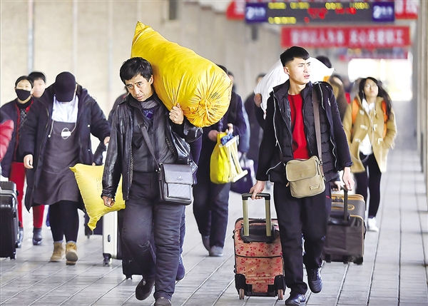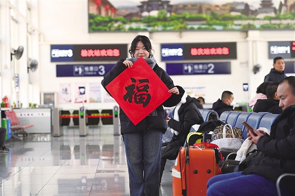 ①带着祝“福”回家的旅客