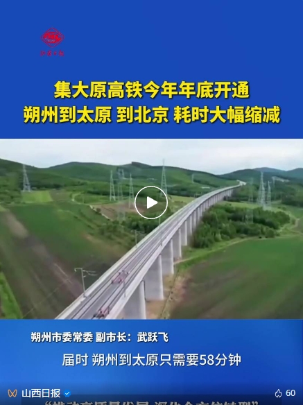 山西日报新媒体记者张馨报道 “在省委、省政府和国铁集团的高度重视和强力推动下,集大原高铁今年年底开通。届时,朔州到太原,只需要58分钟。朔州到北京只需两个半小时。”12月2日,中共山西省委宣传部、山西省人民政府新闻办公室组织召开“推动高质量发展 深化全方位转型”系列主题第二十四场新闻发布会,朔州市委常委、副市长武跃飞介绍朔州市在交通方面的工作情况。