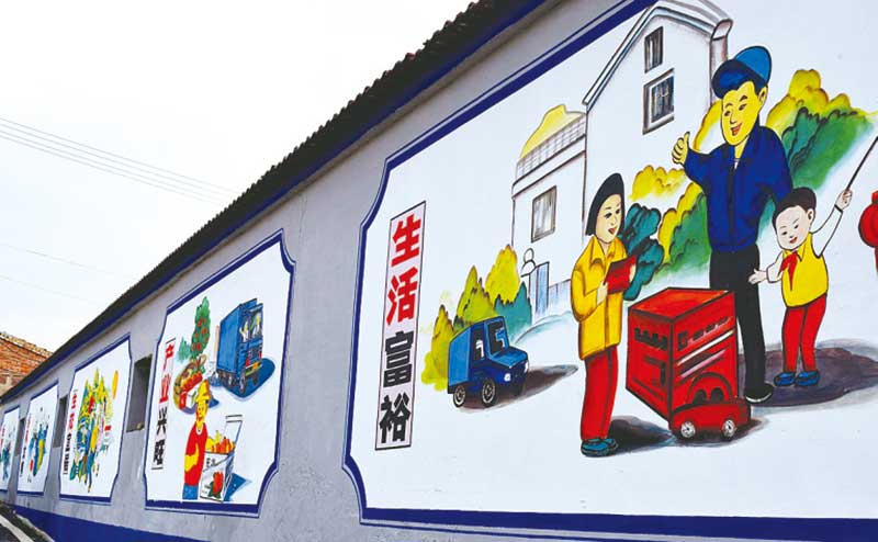 跟随李保田的脚步,记者走进中山村,一股浓郁的艺术气息扑面而来。过去简陋的土墙,如今被精心重构,创意十足。杂乱的陶瓷罐、废酒瓶、旧轮胎,经过村民们的巧手点化,变成了街角灵动的艺术品。粉刷一新的墙面上,“忆童年”“外婆家”“人世间”等主题艺术画栩栩如生。特色小花园、微景观错落有致,成了村庄的“颜值担当”,让人忍不住驻足欣赏。