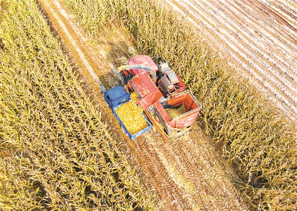 10月25日,和顺县横岭镇仪城村的农田里,大型联合收割机正开足马力,在连片的金黄玉米地里往复穿梭。村民们紧抓近期持续的晴好天气,全力抢收秋粮,确保颗粒归仓,田间地头一派繁忙的丰收景象。