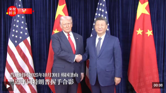 当地时间10月30日中午,中美元首会晤开始前,习近平同特朗普握手合影。