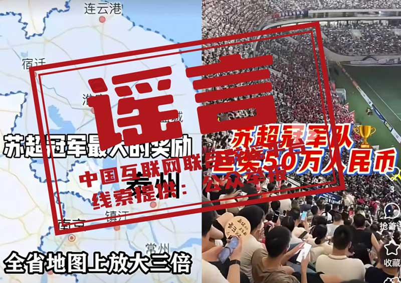 辟 谣 地图放大三个字号?奖金五十万?这些网传苏超冠军队奖励都是假的!