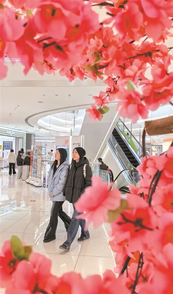 近年来,我市通过打造新兴商业体和便民生活圈,构建了多层次、高品质的消费环境,有效提升了消费便利度和体验。图为市民群众在市城区一家大型商场休闲购物。