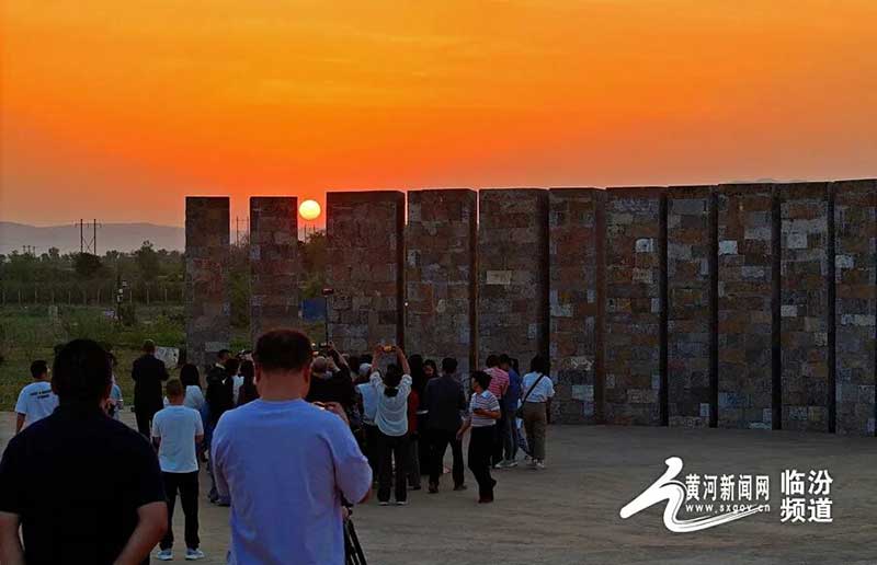 游客在陶寺遗址观象台观看日出。李现俊 摄