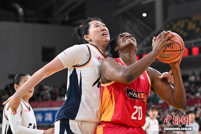2月1日,石家庄队球员戴维斯(白衣)在比赛中上篮。当日,在太原举行的2025-2026赛季中国女子篮球联赛(WCBA)常规赛第22轮比赛中,山西竹叶青酒队主场以97比94战胜石家庄英励队,以18胜4负的战绩获得常规赛冠军。中新社记者 韦亮 摄
