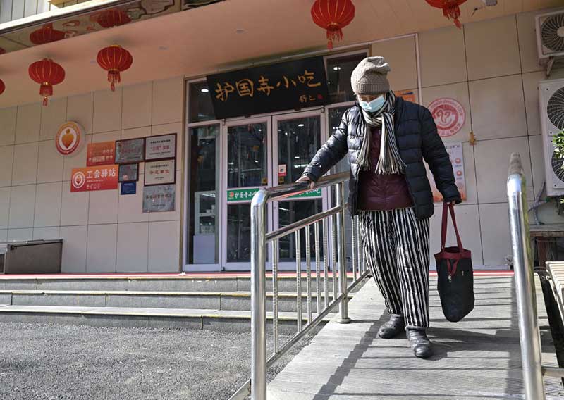 73岁的社区居民走在专为老年人和行动不便者设置的缓步斜坡步道上(2月10日摄)。