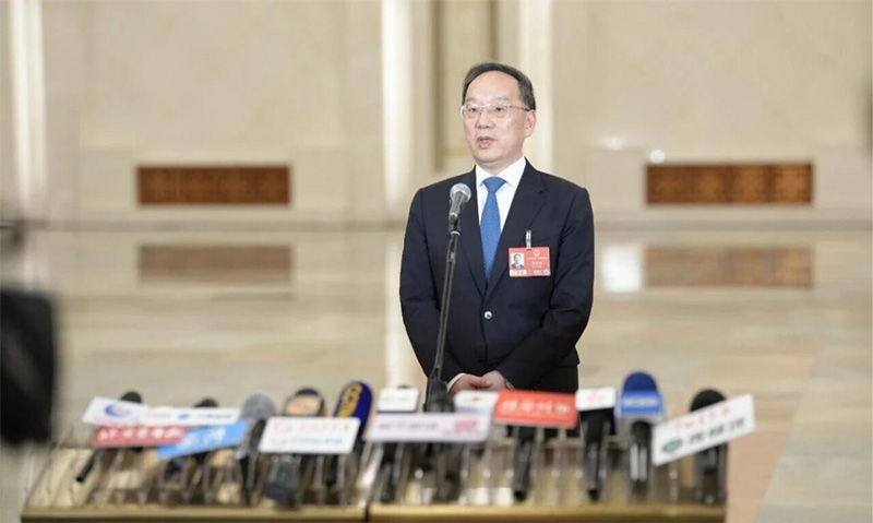 ▲工业和信息化部部长李乐成在“部长通道”接受记者采访(图源:人民画报)