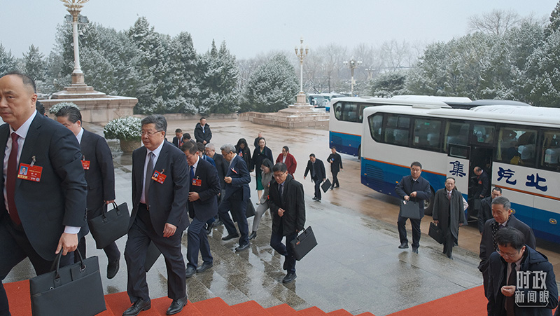 △江苏代表团抵达人民大会堂。(江苏省广播电视总台记者张正拍摄)