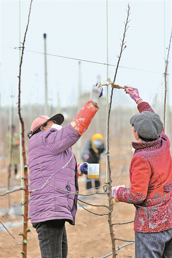 3月30日,在榆次区乌金山镇北要店村华龙科润果业4000亩苹果现代化种植基地项目现场,大型机械往来作业,工人们抢抓农时开展土地整理与果苗护理。该基地选用新一代果品“维纳斯黄金”为主打品种,可以实现两年挂果、三年亩产2500公斤、四年亩产4000公斤进入盛果期,达到结果早、产量高、收益快的目标。