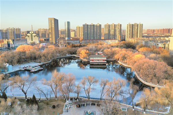 市民在景色宜人的公园里休闲健身乐享冬日暖阳