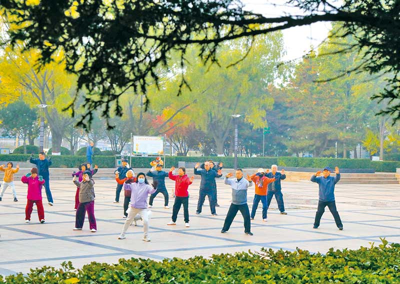 居民在市城区玉湖公园健身